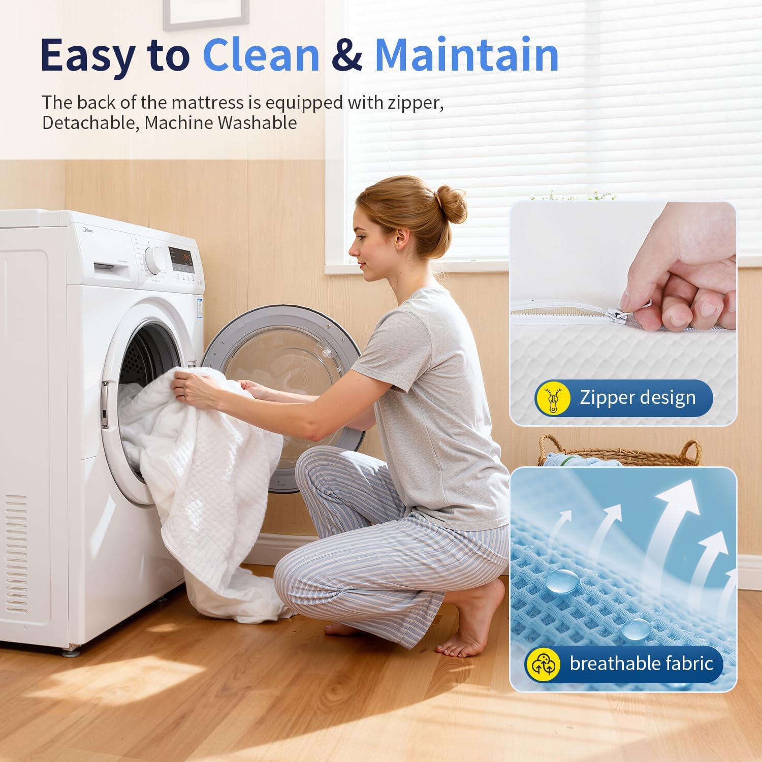 • Removable, machine-washable cover: The standout practical feature for kids and families — the cover unzips and goes straight into the washing machine, extending hygiene and mattress life significantly.